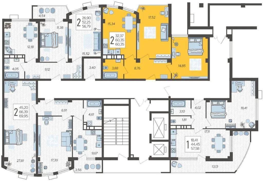 | Продаются 2-комнатные апартаменты в ЖК "Режиссёр" в доме (Литер 4), общей площадью 60.35 кв.м., на 9 этаже. Без отделки, но с возможностью заказать ремонт.