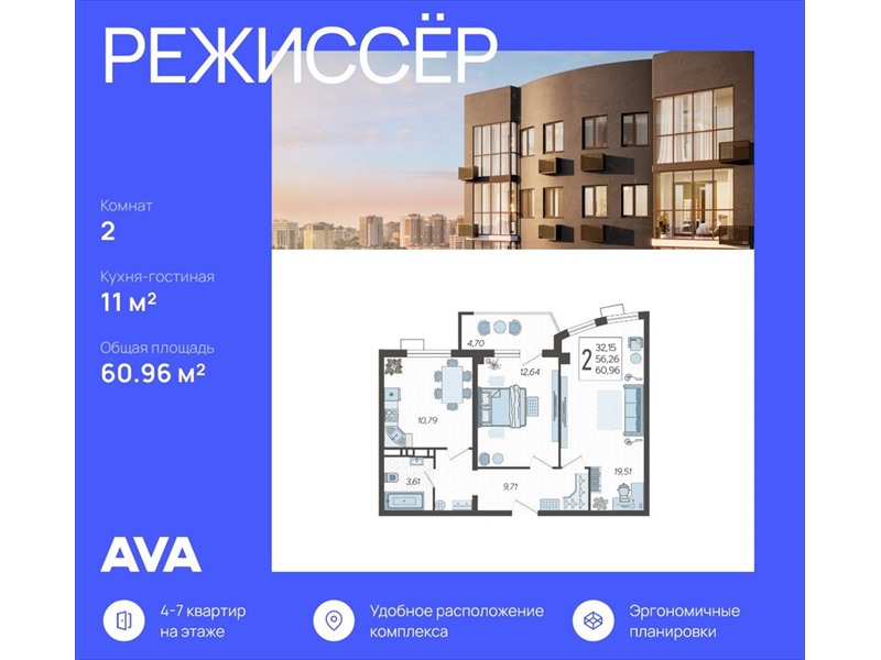 | Продаются 2-комнатные апартаменты в ЖК "Режиссёр" в доме (Литер 4), общей площадью 60.96 кв.м., на 9 этаже. Без отделки, но с возможностью заказать ремонт.