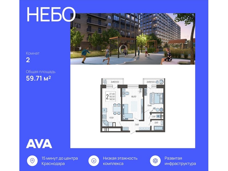 | Продается 2-комнатная квартира в новостройке ЖК «Небо» по адресу : город Краснодар, Ярославская улица, Литер Литер 3. Общая площадь квартиры - 59.71 кв. м., этаж 1 из 12. Без отделки, но с возможностью заказать отделку.