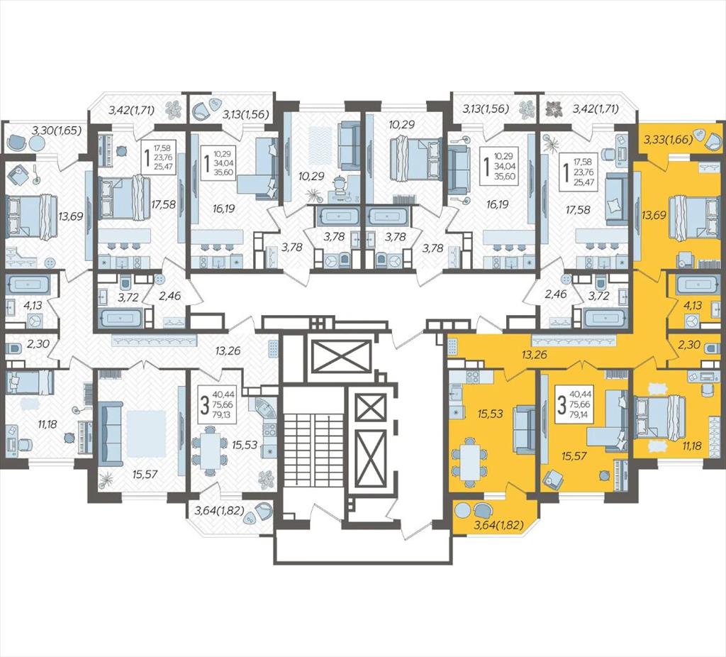 | Продаётся 3-комнатная квартира в строящемся доме (Дом Литер 1), срок сдачи: 1 кв. 2025, общей площадью 79.14 кв.м., на 13 этаже. Без отделки, но с возможностью заказать отделку