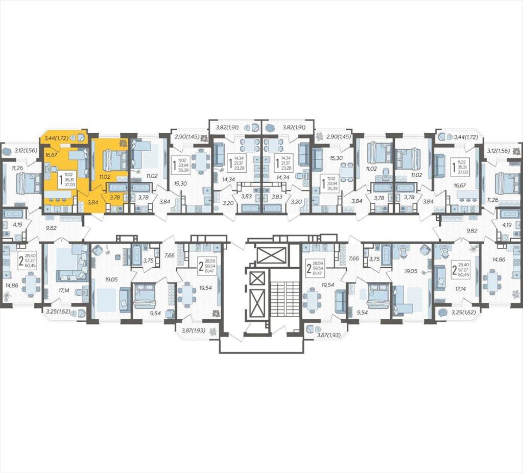 | Продаётся 1-комнатная квартира в строящемся доме (Дом Литер 1), срок сдачи: 1 кв. 2025, общей площадью 37.03 кв.м., на 11 этаже. Без отделки, но с возможностью заказать отделку