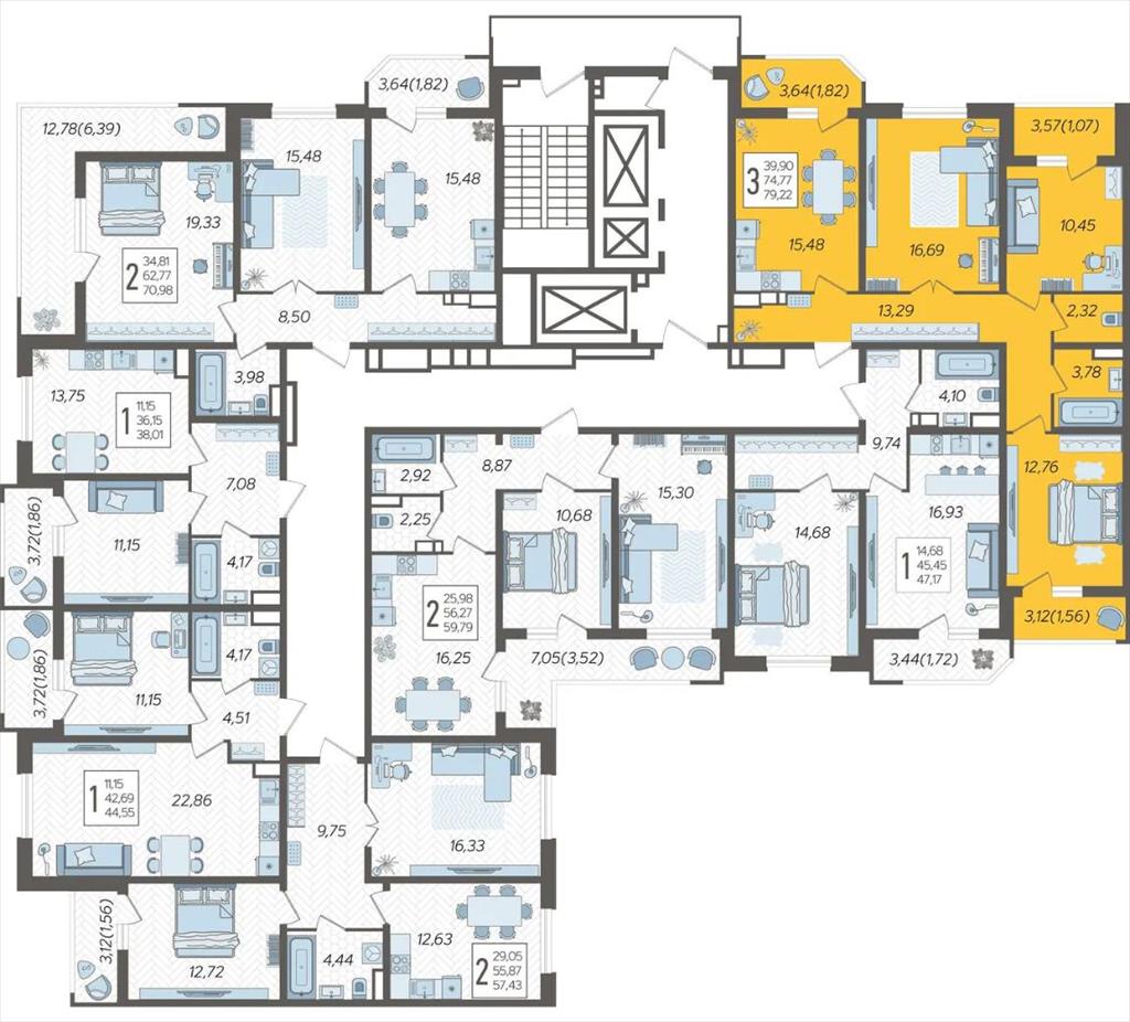 | Продаётся 3-комнатная квартира в строящемся доме (Дом Литер 1), срок сдачи: 1 кв. 2025, общей площадью 79.22 кв.м., на 3 этаже. Без отделки, но с возможностью заказать отделку