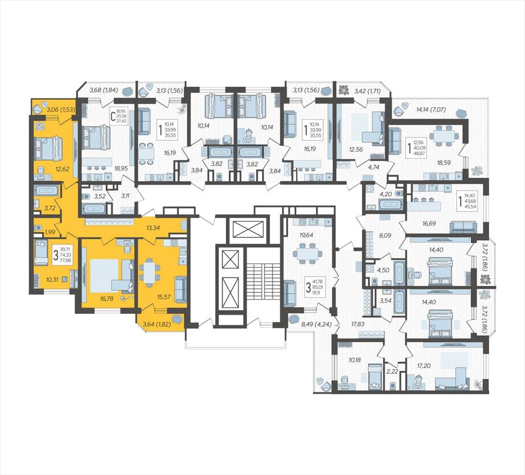 | Продаётся 3-комнатная квартира в строящемся доме (Дом Литер 1), срок сдачи: 1 кв. 2025, общей площадью 77.68 кв.м., на 16 этаже. Без отделки, но с возможностью заказать отделку