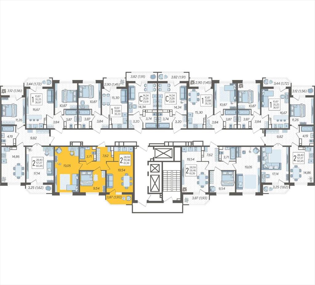 | Продаётся 2-комнатная квартира в строящемся доме (Дом Литер 1), срок сдачи: 1 кв. 2025, общей площадью 61.39 кв.м., на 21 этаже. Без отделки, но с возможностью заказать отделку