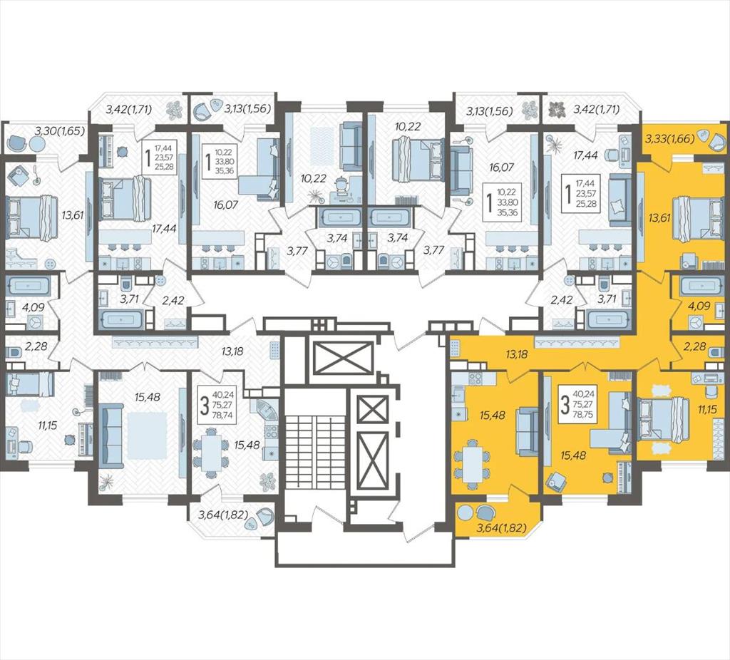 | Продаётся 3-комнатная квартира в строящемся доме (Дом Литер 1), срок сдачи: 1 кв. 2025, общей площадью 78.75 кв.м., на 4 этаже. Без отделки, но с возможностью заказать отделку