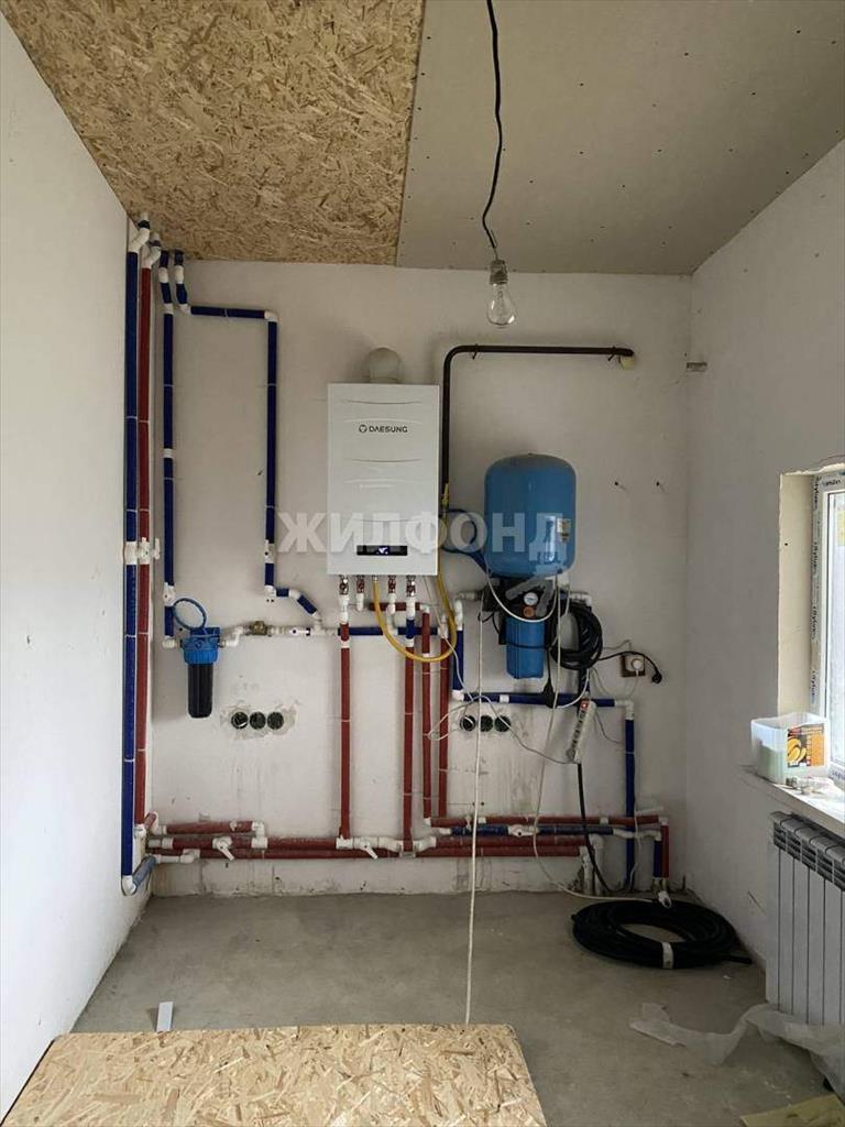 Дом в черновой отделке, штукатурка, в доме 2 санузла (по 1 на каждом этаже все раздельные) , на втором этаже туалет и ванна готовы, с отделкой плиткой, потолок. Стоят металлопластиковые окна, двери, автономное газовое отопление.