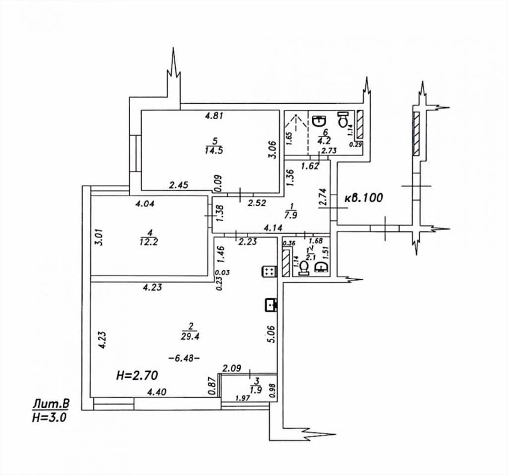 Общая площадь: 70,3 м²