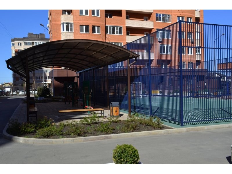 Территория комплекса огорожена по всему периметру, во дворе установлены камеры видеонаблюдения. Ворота и шлагбаумы на въездах ограничивают доступ для посторонних. На придомовой территории расположились современные детские и спортивные площадки, футбольное и баскетбольное поля, тренажеры для кардио и силовых тренировок. Также на территории комплекса вас порадует собственная мангальная зона, где так приятно будет проводить вечера в компании родных и близких!
