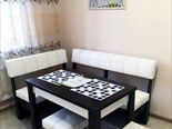 Все столовые принадлежности, есть вся посуда для приготовления пищи. Всё всегда чистое и свежее. Выдается качественное и всегда выглаженное постельное белье, полотенца, все необходимые для жизни мелочи. После каждого гостя профессионал-горничная проводит генеральную уборку.